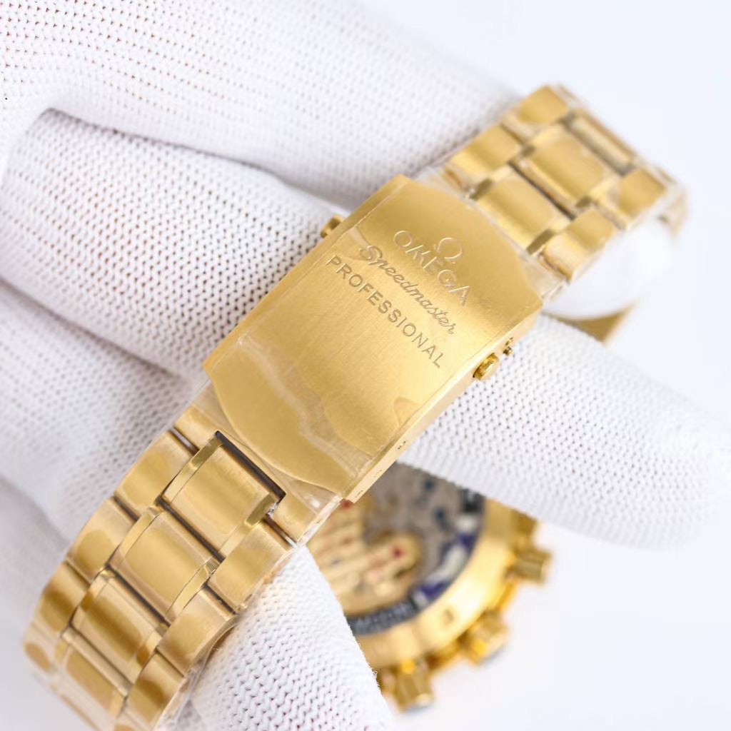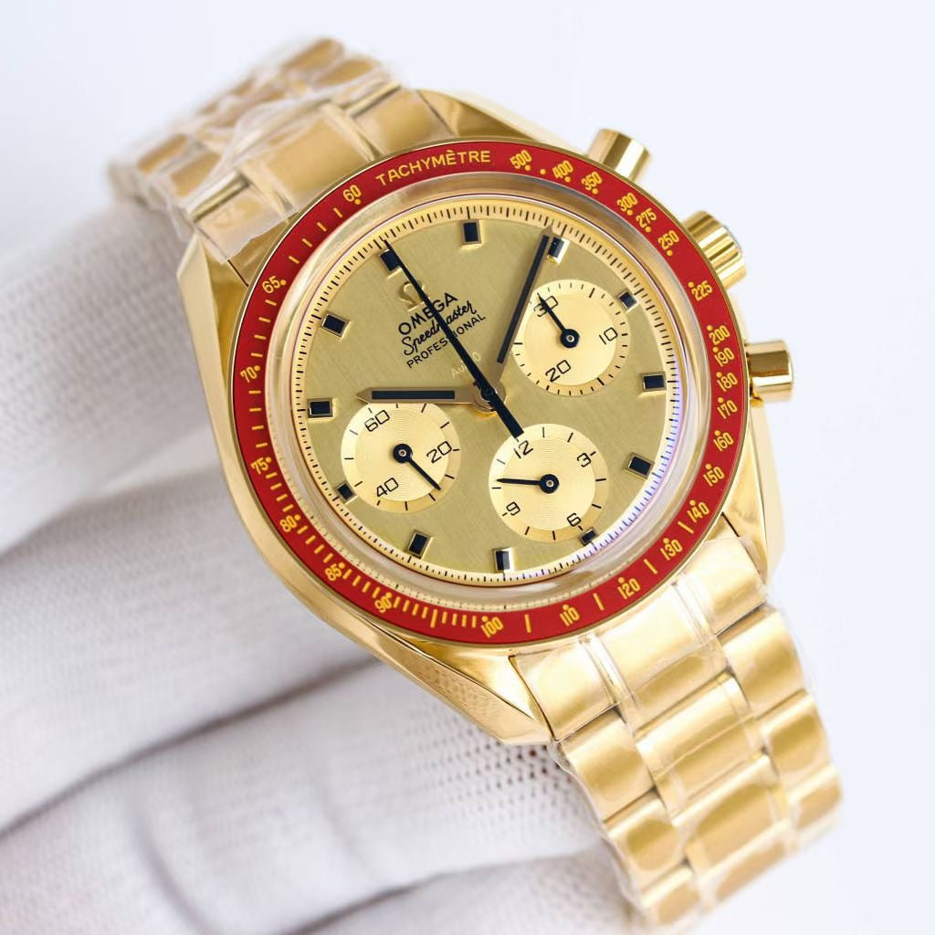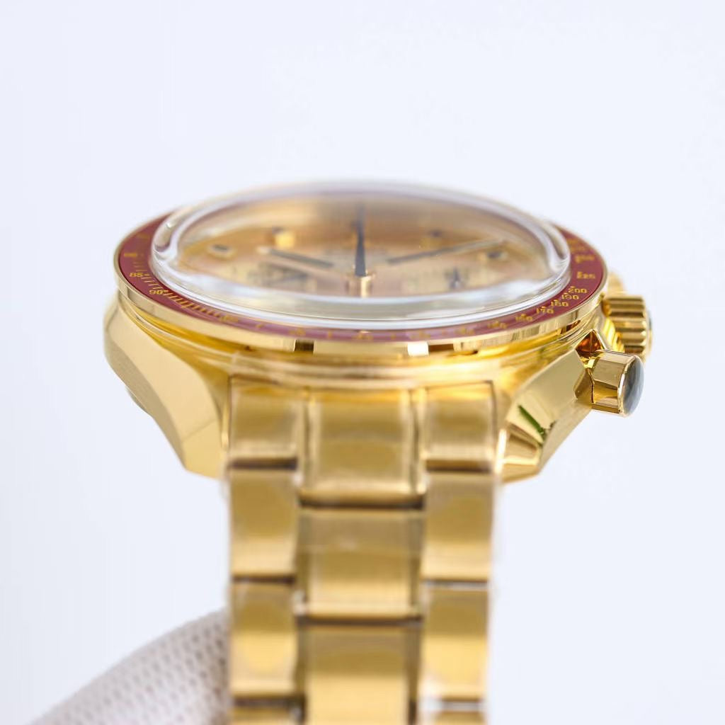 The 50th anniversary of the "Apollo 11" moon landing is a limited edition all-gold bully, a rare collection with a burgundy red ceramic bezel, a pure gold dial with black onyx hour markers and a pot cover with a sapphire crystal mirror Case size 42mm can be matched with gold The steel belt and the movement are also changed to the modern 3861 Zhizhi classic manual winding chronograph movement (3861). It has a classic and individual appearance design, and is highly praised in terms of performance.